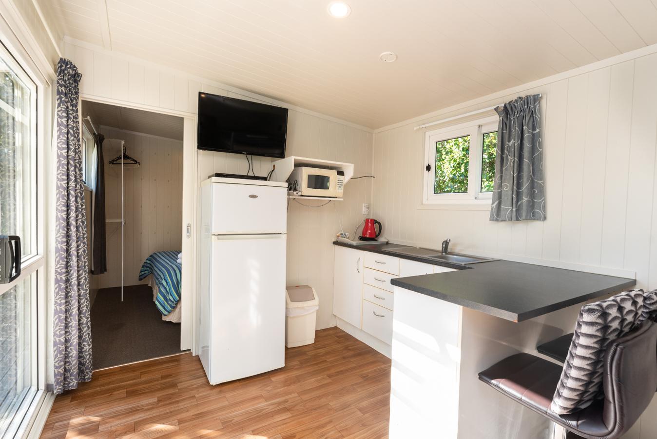 Self-contained cabins have everything you need. All linen including towels is provided, the cabins have an ensuite shower and toilet and a TV. The kitchenette is equipped with fridge, microwave, double hotplate and tea and coffee-making facilities.